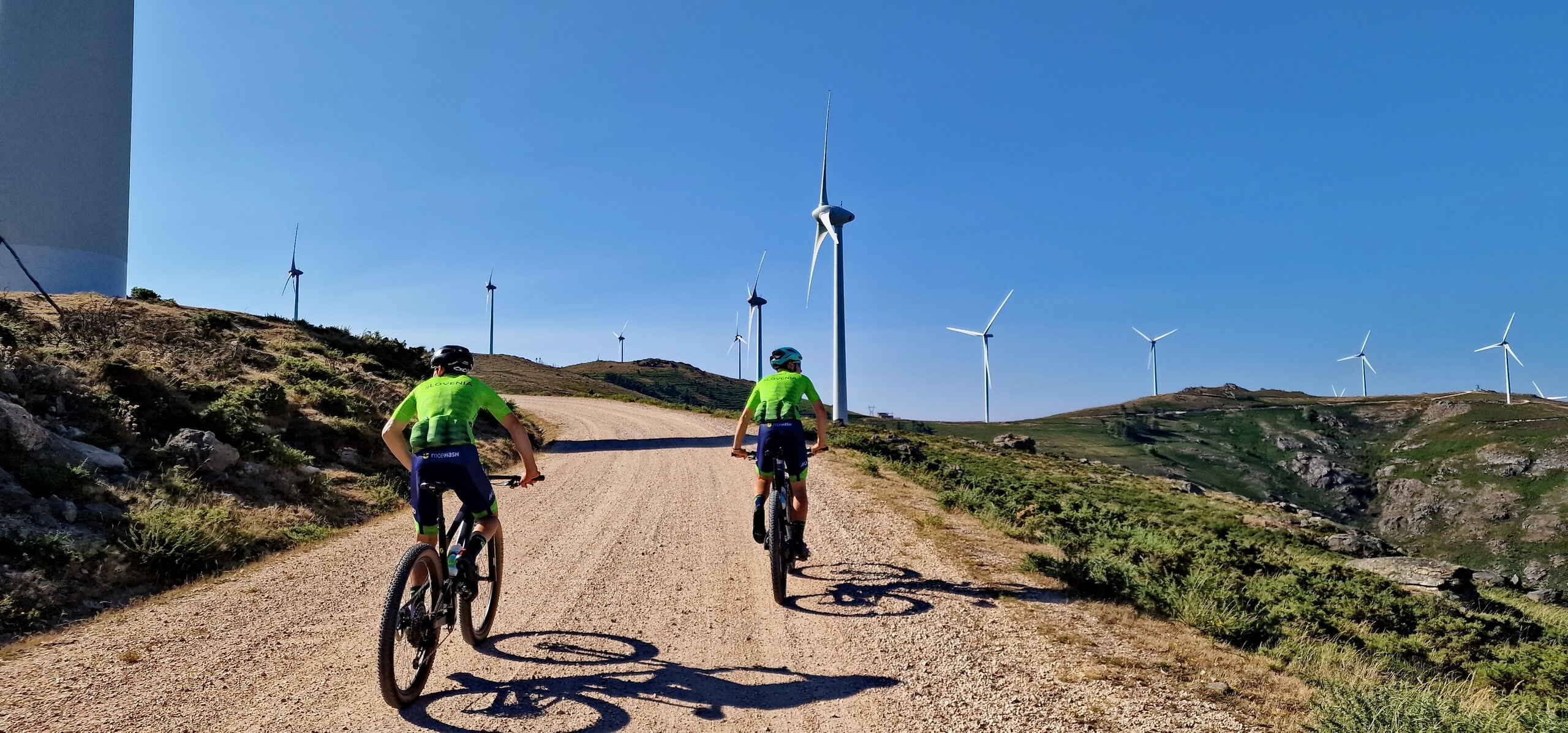 V nedeljo je dirkala samo Vita, zato je bilo dopoldne več časa. Ker je mladina fasala tri ure treninga, je padla ideja, da bi šel z njimi. Navsezadnje sem usposobljen trener. Tudi kolesarski vodnik. Zaželeli so si k vetrnicam, ki se pnejo nad dolino na španski in portugalski strani. Tja je vleklo tudi mene, a greben na portugalski strani je visok do 1200 metrov, mi pa smo bili 60 metrov nad morjem. Neugodno. Če so že pokazali voljo, sem jim pa ustregel, čeprav me je skrbelo, kako se bom vozil z najboljšimi v Sloveniji – ne glede na to, da sem štartal z za asfaltno-makadamske terene bistveno bolj primernim vozilom.